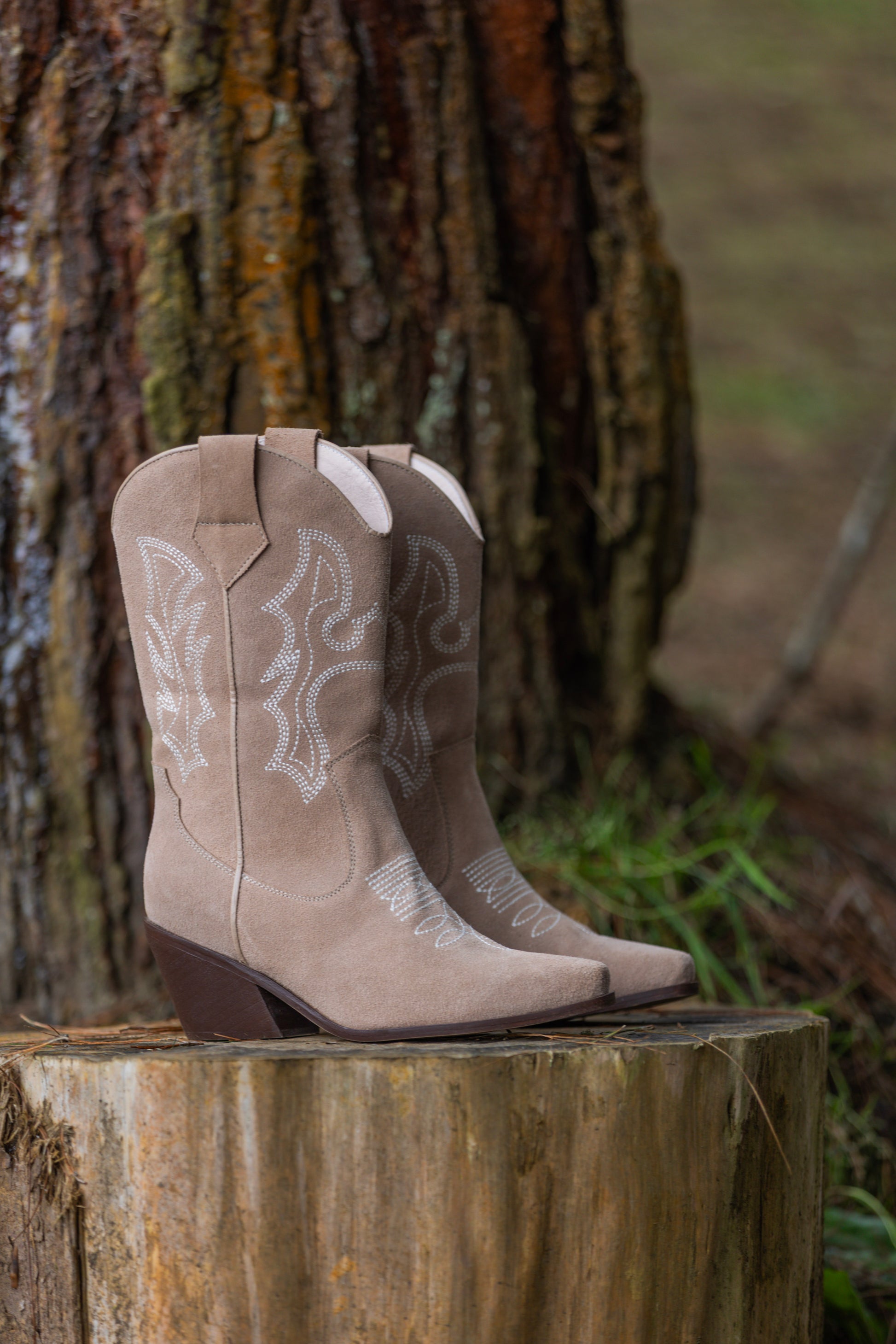 Texanas fabricadas a mano, 100% en cuero vacuno tipo carnaza color taupé