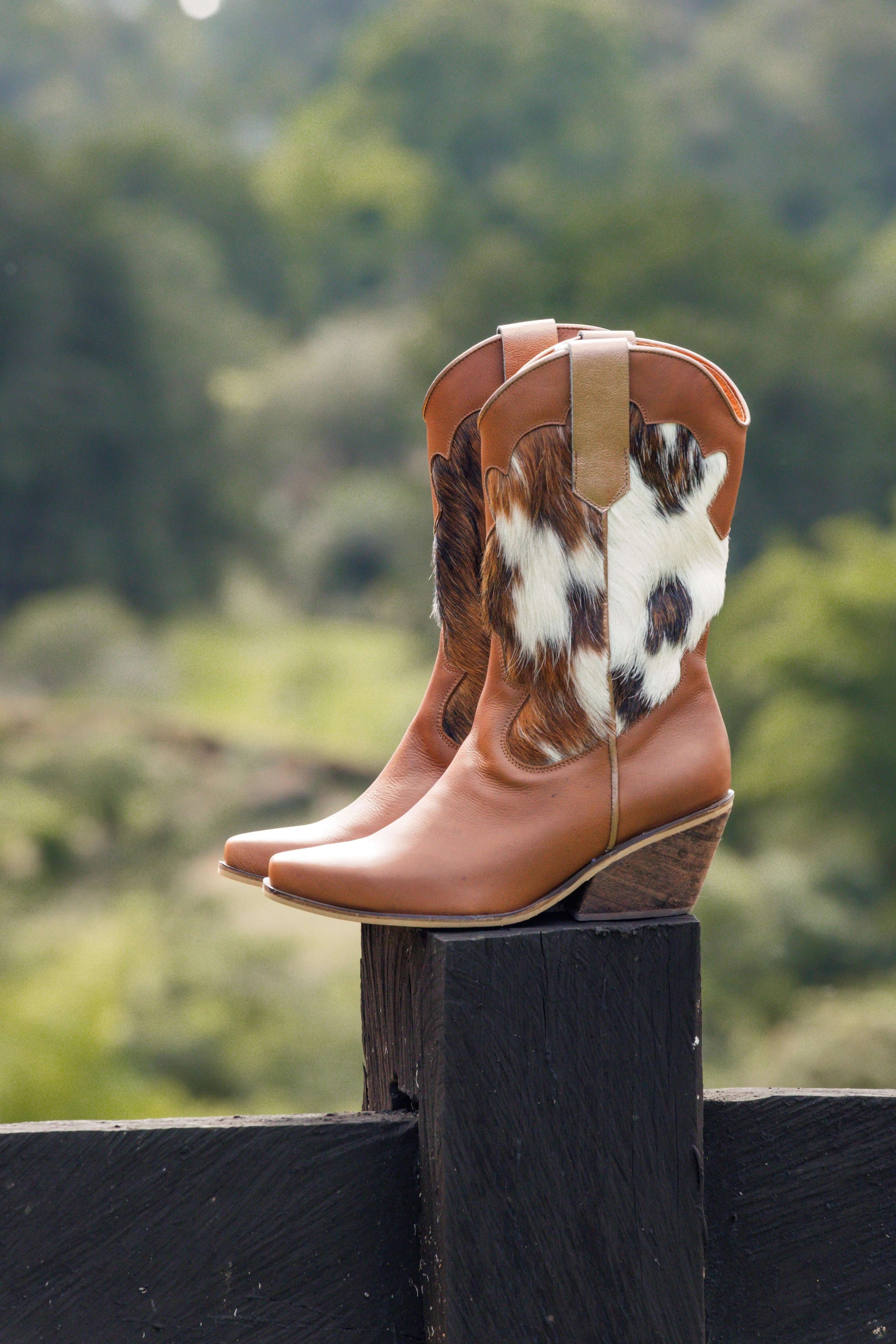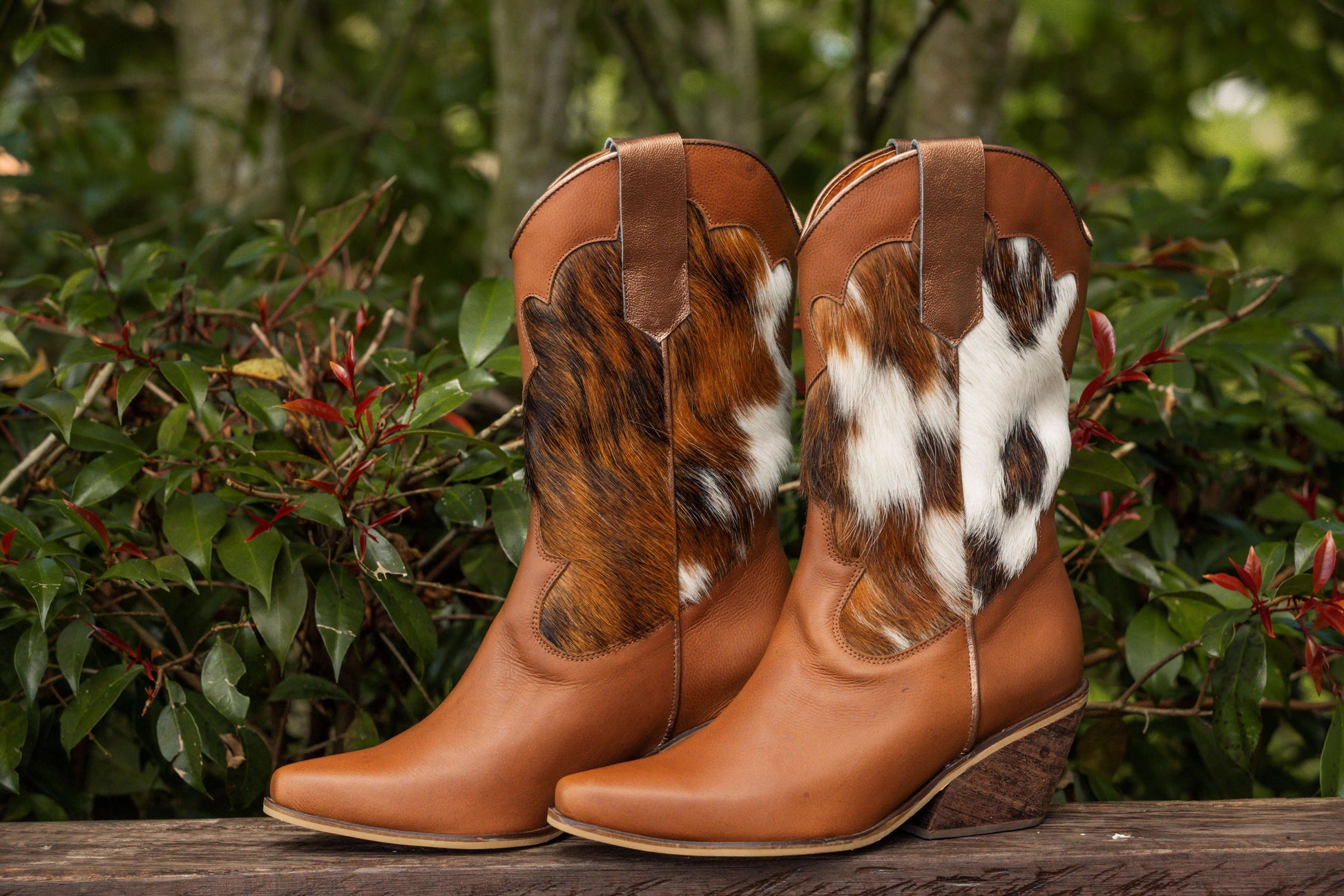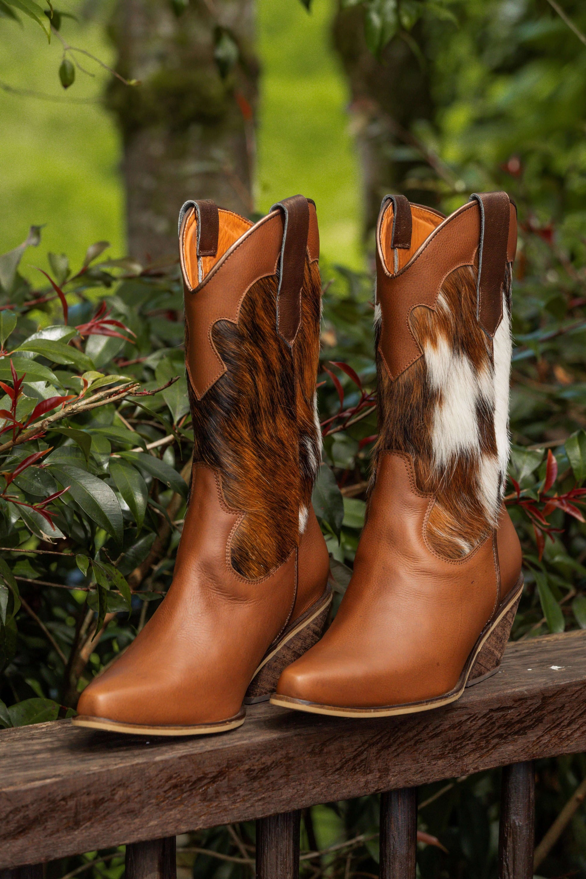 Texanas fabricadas a mano, 100% en cuero vacuno, envejecido y cuero pelo en cañas que brinda un estilo vaquero atemporal