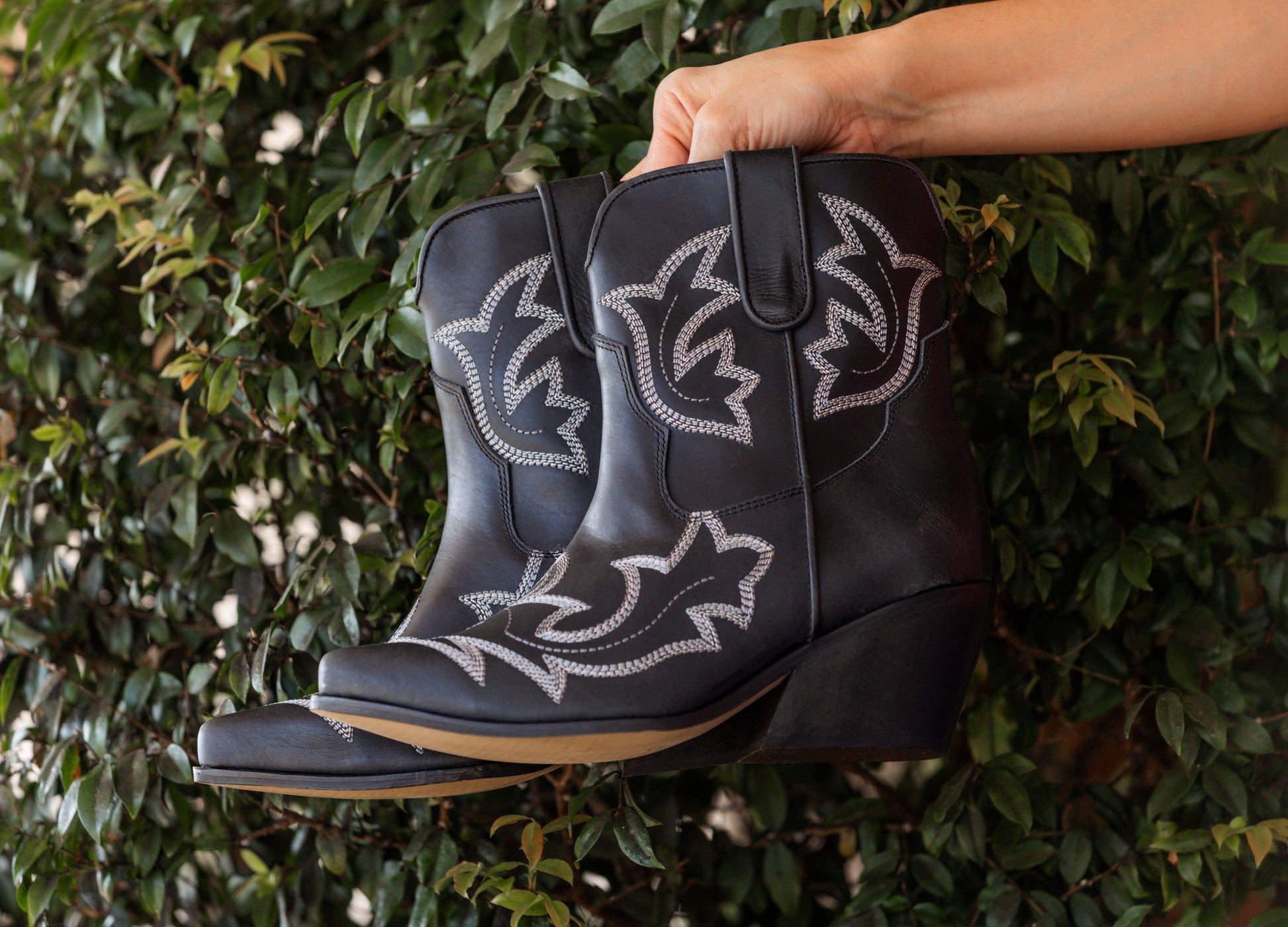 Texanas fabricadas a mano, 100% en cuero envejecido color Negro